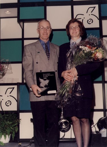 Monsieur Marcel Fillion et madame Raymonde Beaulieu, propriétaires de la ferme Mérick SENC lors de la remise de leur prix de Ferme porcine de l'année 1999, catégorie naisseur-finisseur lors du Gala du mérite de l'industrie porcine du Québec du Gala du mérite de l'industrie porcine du Québec. |